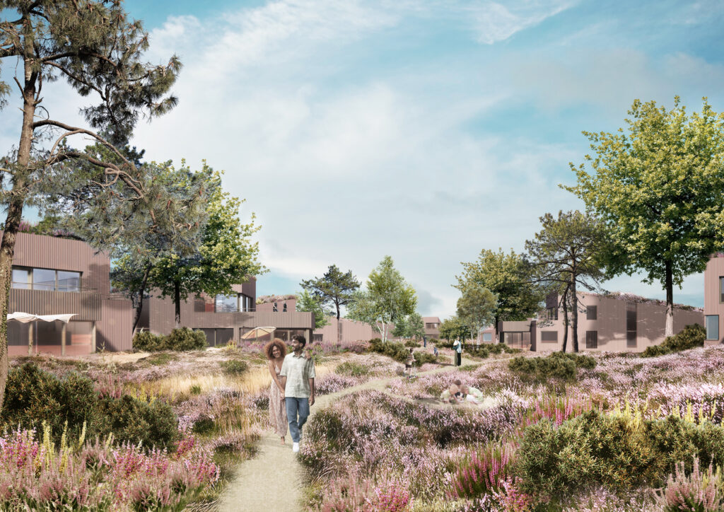 Op De Heide is de natuur van iedereen: geen schuttingen, maar hoogteverschillen en groen zorgen voor privacy. Speciaal ontworpen (half)vrijstaande woningen gaan op in het heidelandschap.